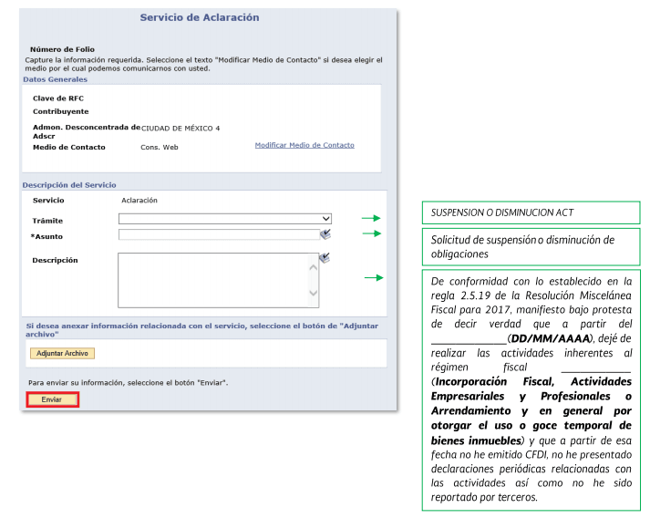 Para obtener esta suspensión de actividades debemos ir a la página de Internet del SAT o en la sala de Internet de cualquier ALSC, se atiende preferentemente con cita.